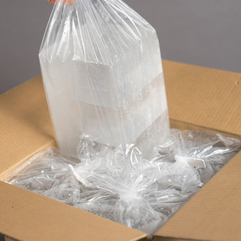 かき氷用、飲料冷却用に均一な形状で、衛生的にお届けします。