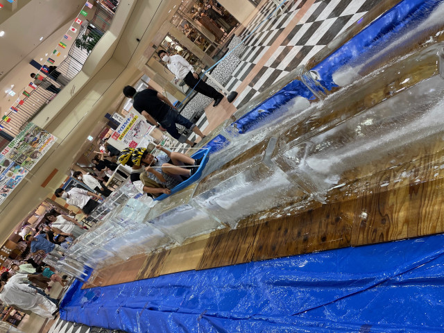 ショッピングモール内でアイススライダー